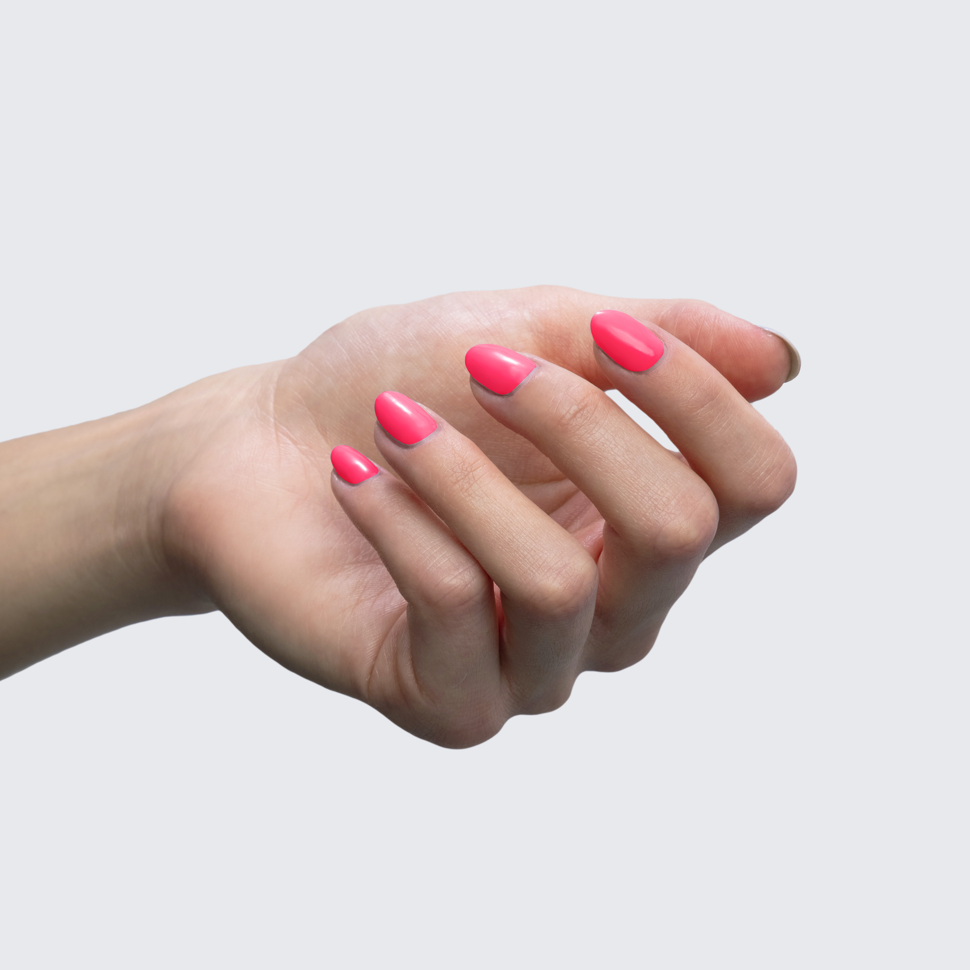 Neon pink. Bright. Cool undertone. Medium opacity.